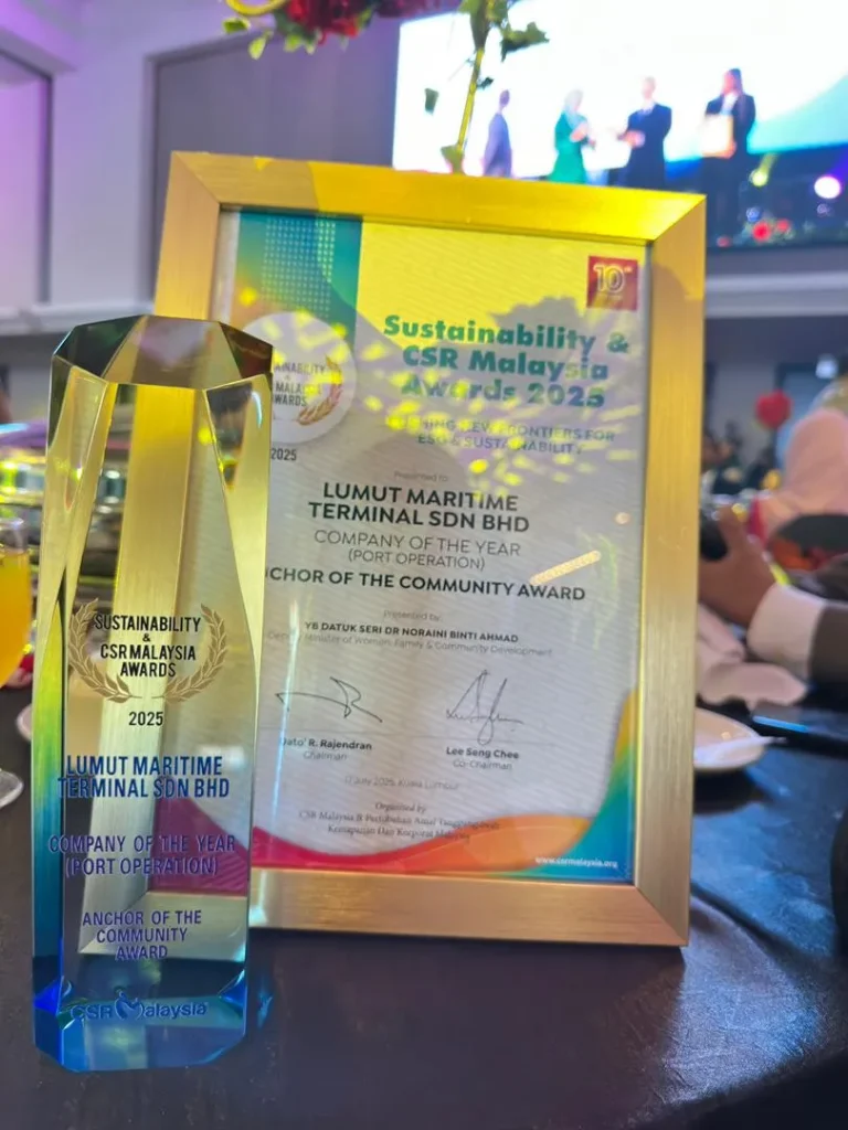 [2025, July 18] In a glittering ceremony attended by Malaysia’s corporate elite, Lumut Port Sdn Bhd was crowned ‘Company of the Year (Port Operations)’ at the 10th Sustainability & CSR Malaysia Awards last night – a particularly sweet achievement as the port operator prepares to celebrate its 30th anniversary on 24th July.